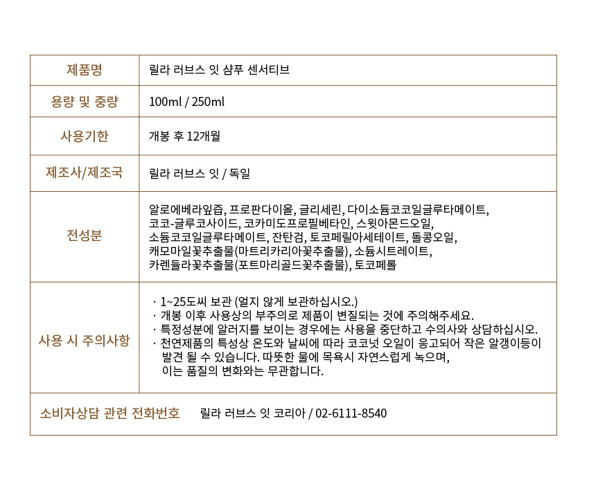 릴라러브스잇 샴푸 센서티브 250ml