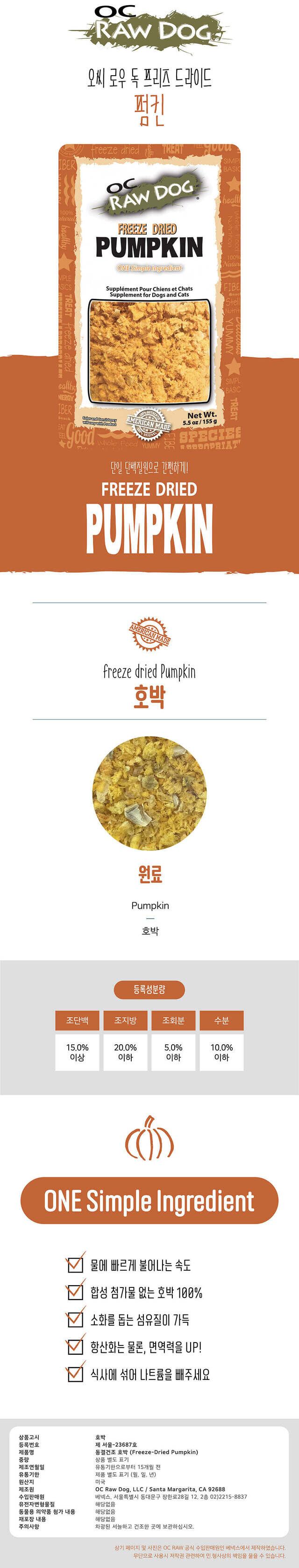 오씨로우 동결건조 펌킨 155g