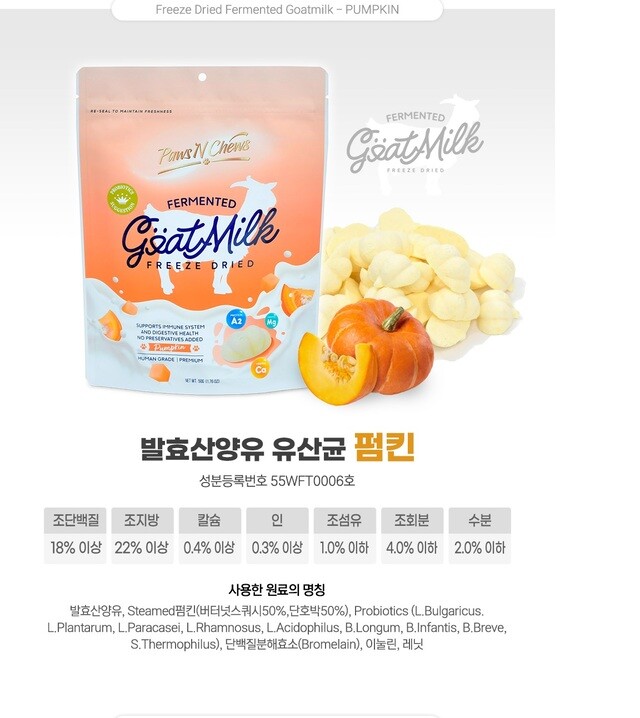 포앤츄 산동트 산양유 요거트 동결건조 트릿 55~60g 단호박