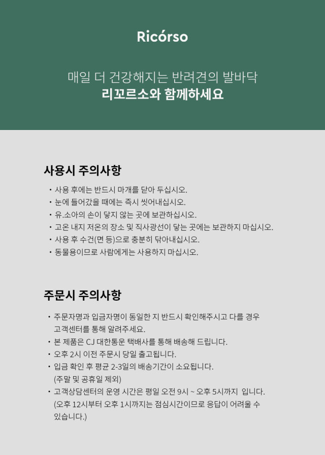 - 상품 하자, 오배송의 경우 수령일로부터 7일 이내 고객센터 접수 후 교환∙반품이 가능합니다. (교환/반품비 무료)